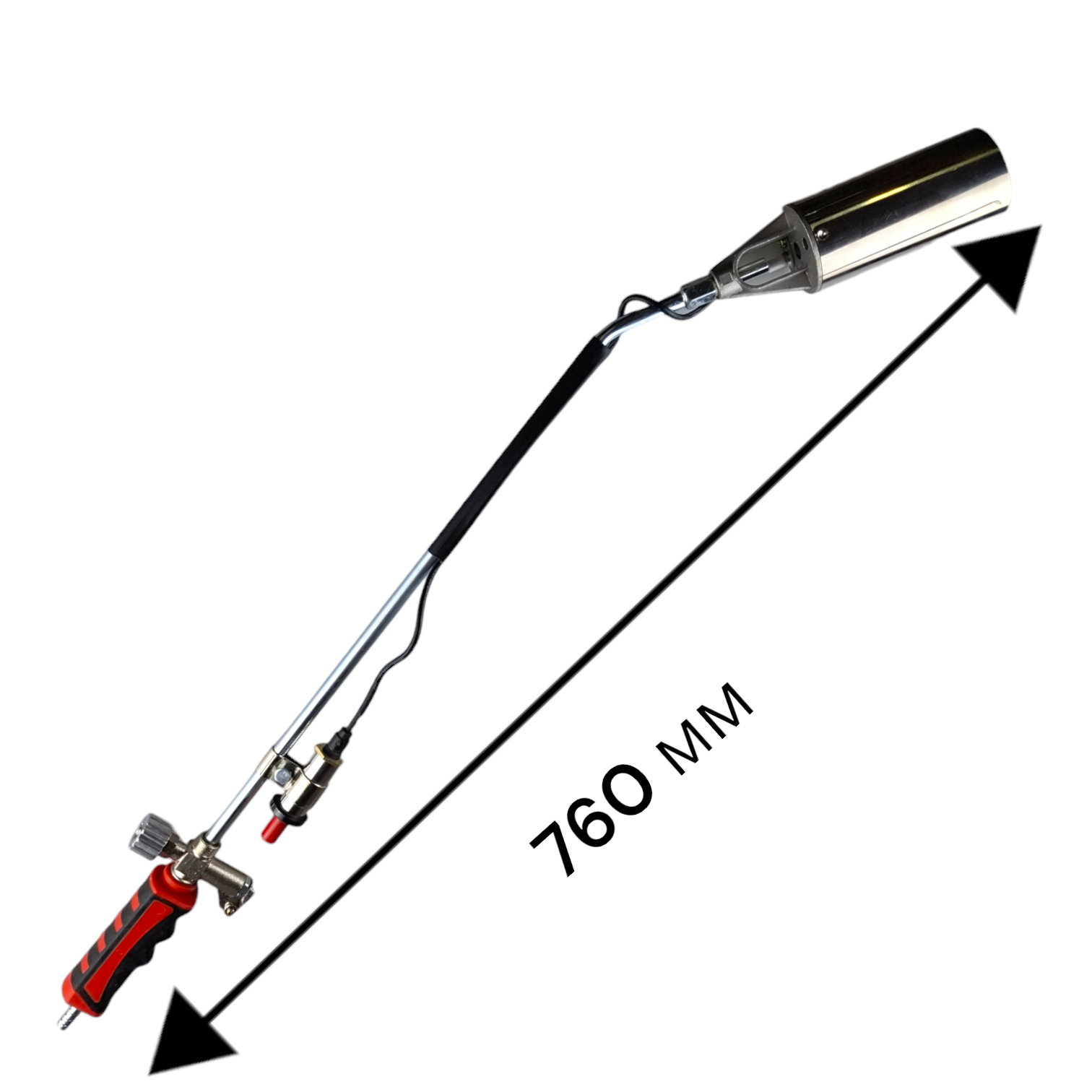 Эргономичная ручка газовоздушной кровельной горелки изготовлена из термостойкого пластика. Общая длина вентильной горелки 760 мм.