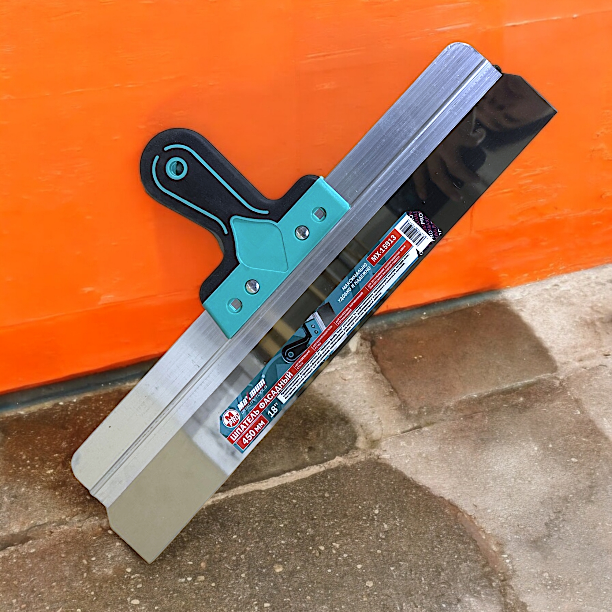 Шпатель фасадный алюминиевый 450мм x 0.5 мм, 18", двухкомпонентная рукоятка, 410, "MAXIMUM" MX 15913