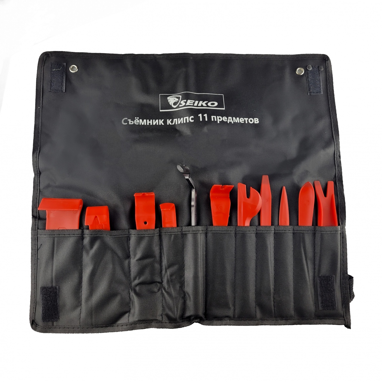 Набор съемников панелей салона поставляется с портативным чехлом на липучках, удобным для хранения и переноски инструментов.