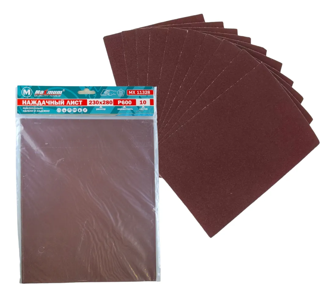 Наждачная бумага Р 600 10 листов от "Maximum Quality Tools" с зернистостью P 600 крепится под зажим и используется для обработки поверхностей из дерева и металла.