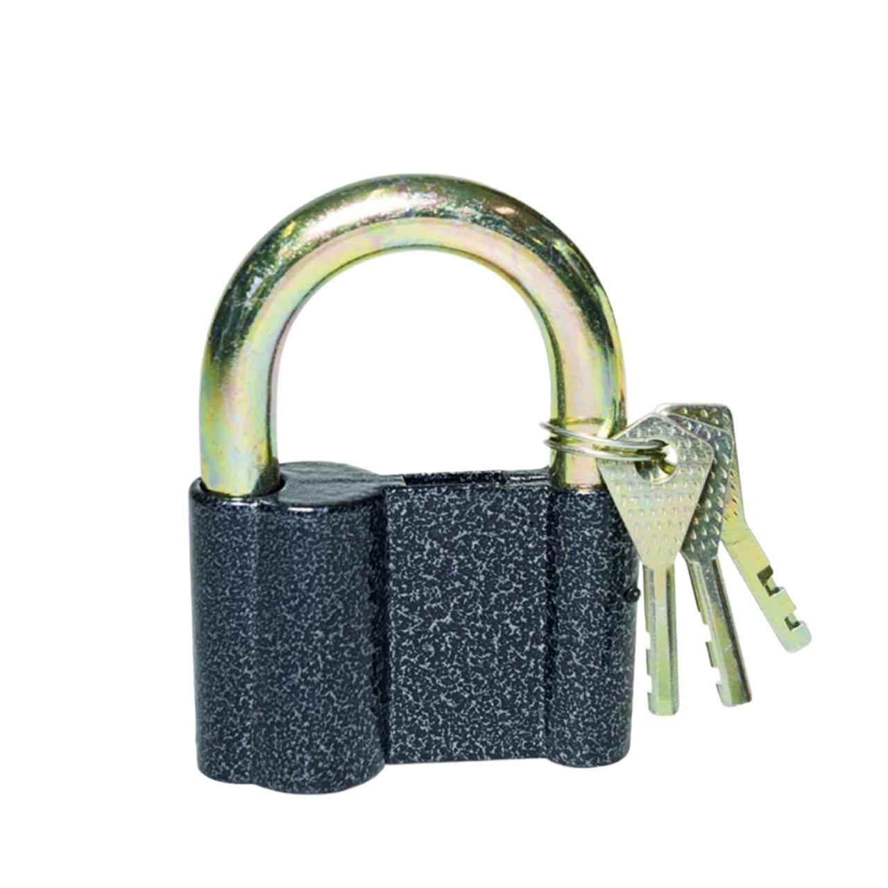 Замок со стальной закалённое дужкой, исключает возможность распила или перекусывания, а сложная конструкция личинки замка повышает надежность от вскрытия.