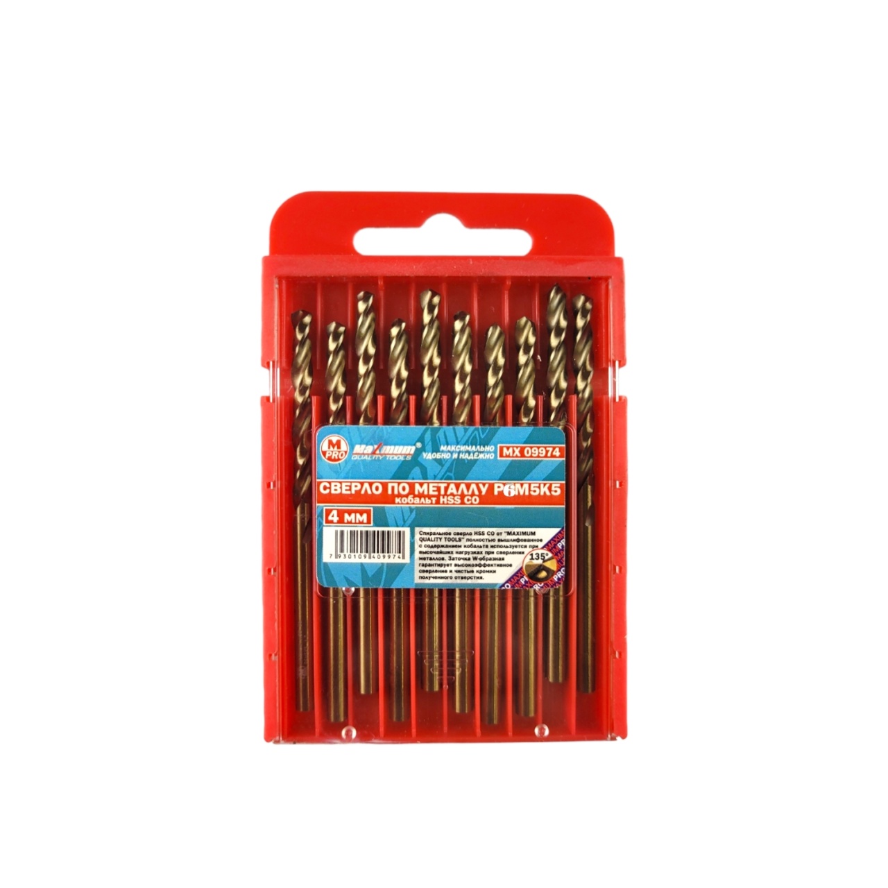 Сверла HSS по металлу для дрели и шуруповерта 4 мм из стали P6M5K5 с добавлением кобальта от «Maximum Quality Tools» c легкостью создают отверстия в металлических конструкциях и листовой стали. Высокая прочность сверла с добавлением кобальта 4 мм обеспечивает безопасную и быструю работу.